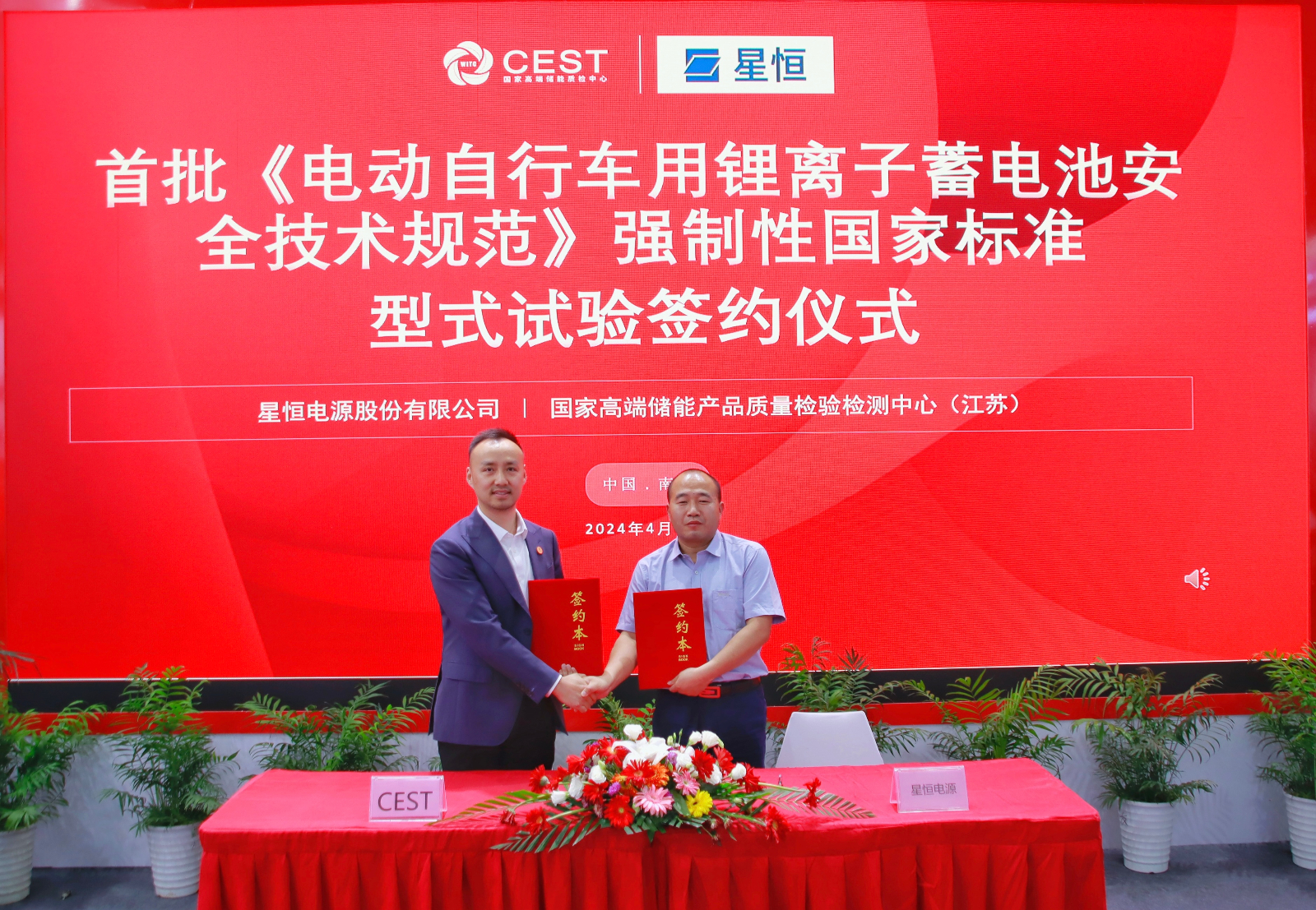CEST與星恒攜手開展國強標型式試驗合作,CEST將以先進的檢測設備、領先的檢測能力,為星恒提供完善的檢測認證服務,助力星恒產品品質更加卓越。