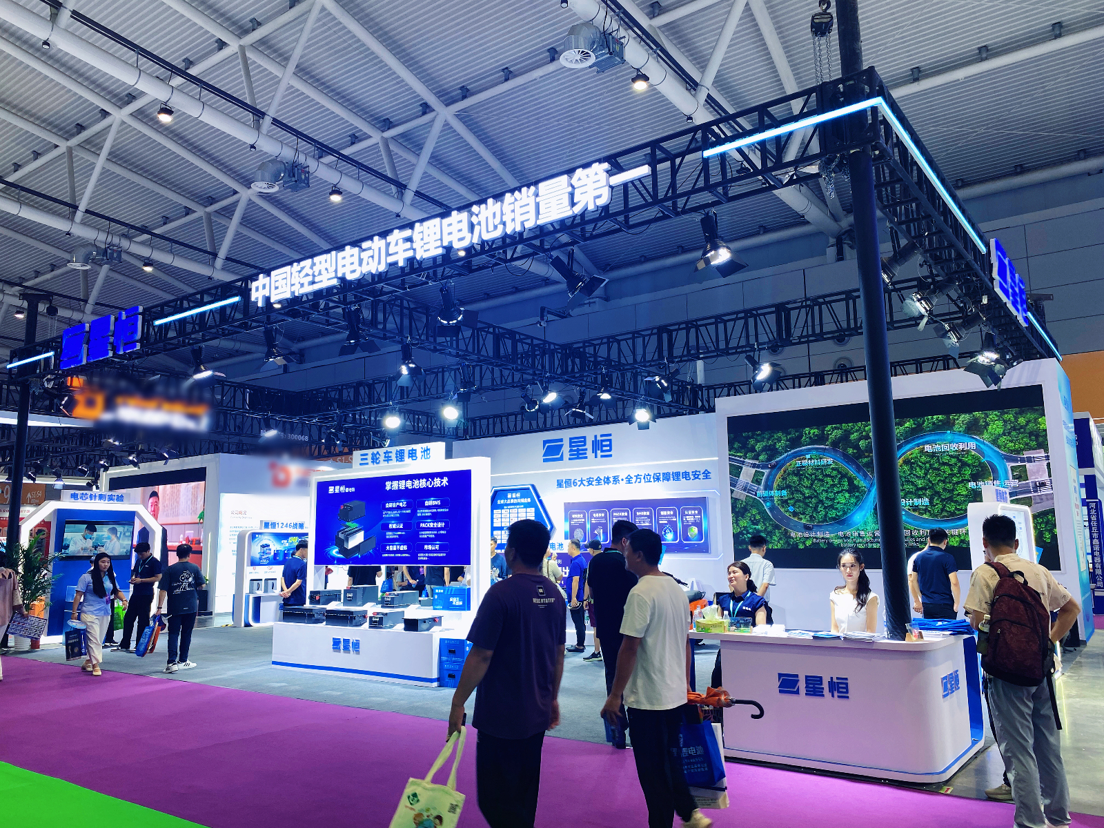 展會現場,星恒全明星鋰電家族璀璨登場,64100、76100、76140、76200等電三鋰電池旗艦產品,憑借全面領先優勢成為全場矚目的焦點。